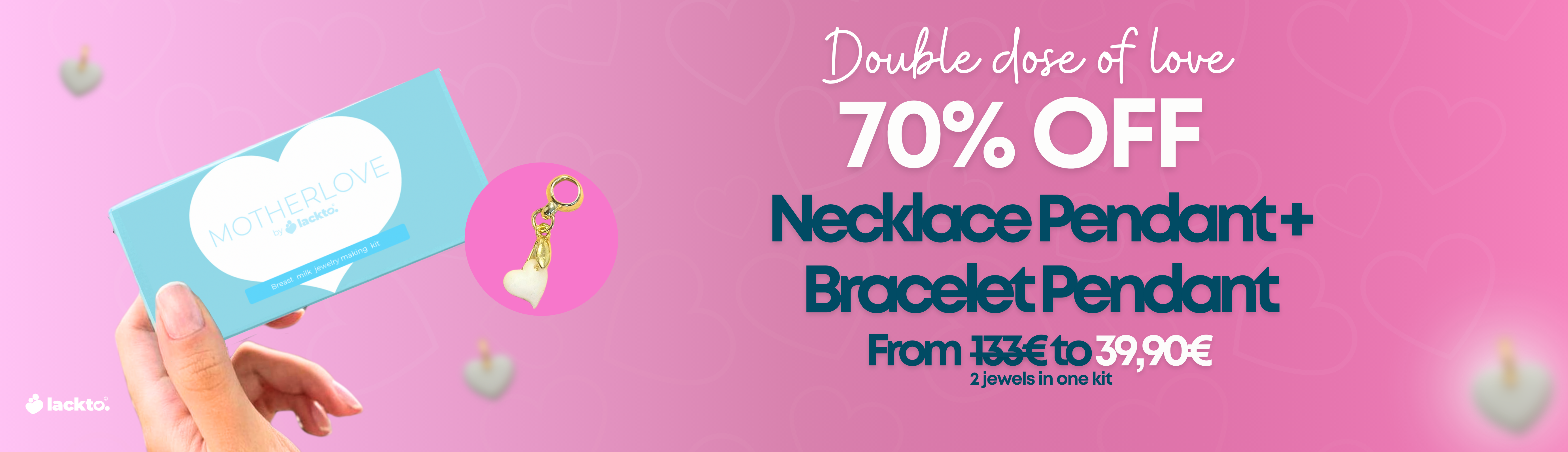 Wähle deinen MotherLove-Anhänger aus Muttermilch und erhalte einen Mini-Herzanhänger im gedrehten Design dazu. 2 Schmuckstücke in 1 Set.